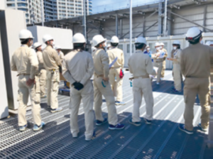 職場や現場に潜むリスクの発見・除去・低減のために、安全衛生委員会と部門が連携して安全パトロールを実施し、協力会社とコミュニケーションを図りながら作業環境の改善を行なっています。また、社員の安全意識の向上を目的とした各種安全衛生教育を実施し、社員自らが「労働災害は自分事」として捉え、労働災害ゼロに向けた活動を推進しています。